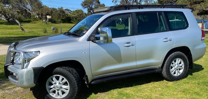 Features: Toyota Landcruiser V8 4500cc diesel, automatic transmission, airco, radio with USB, 93 litres fuel tank, fuel consumption 11-12 litres per 100 km, 8 seats with seat belts (maximum 5 adults and 3 children), 3 anchor points for child or booster seats, sunroof, bullbar, roof racks, 12V air compressor and electric brake controller. Permitted on the Gibb River Road and side tracks.