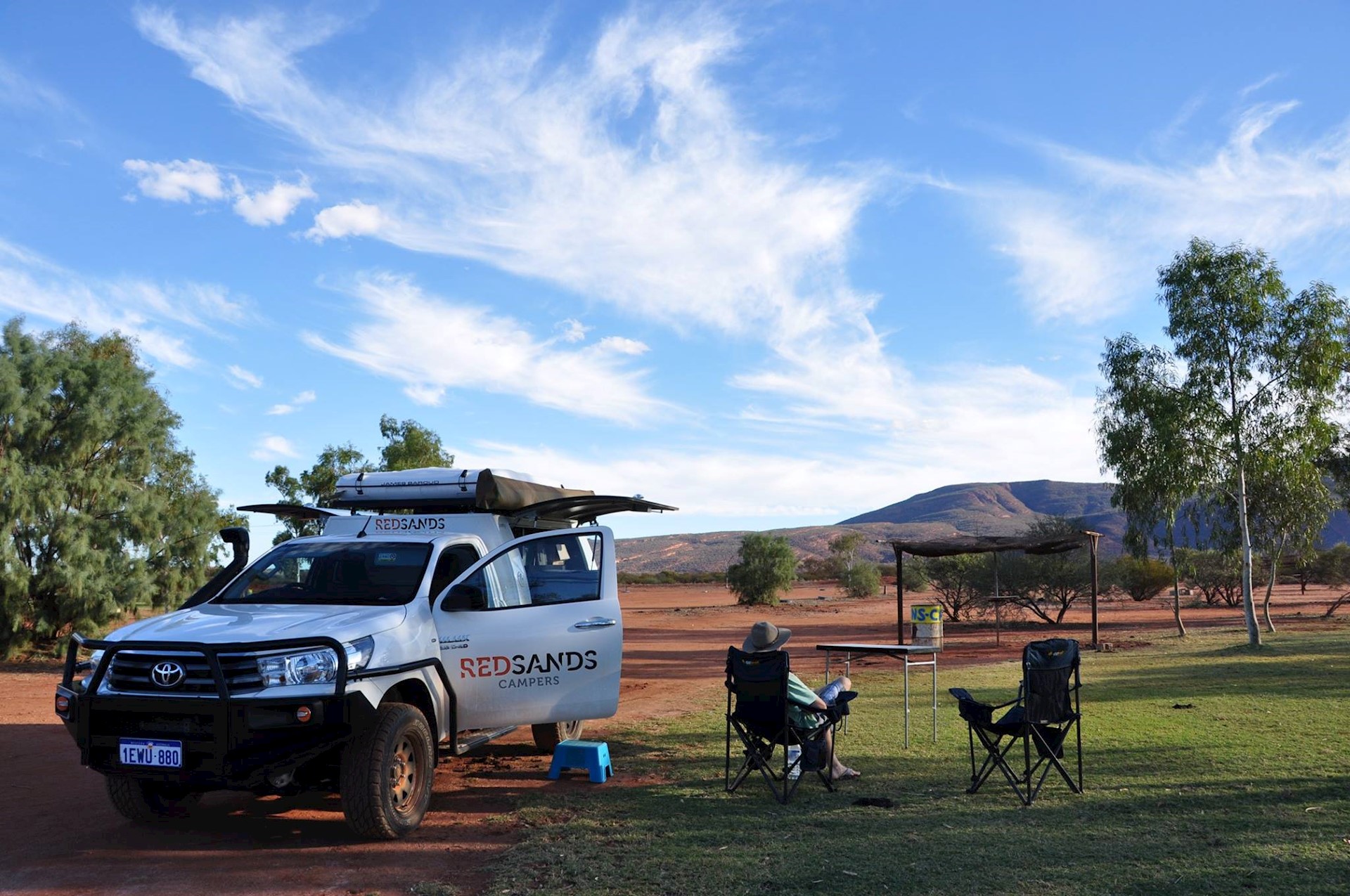 Features: Toyota Hilux, 3000 cc diesel, automatic transmission, 142 litres fuel tank (extra 20 litres diesel can is available), fuel consumption 12 litres per 100 km*, 80 litres water tank, 40 litres fridge, 2 seats with seatbelts, 2 sleeping places in rooftent (L198 x W140 cm), GPS navigation, radio with bluetooth, USB ports in rear, reversing camera, solar panel, airco, snorkel, bullbar, drawers for storage, dual battery, very large awning, recovery kit, UHF radio, EPIRB (also called PLB/Personal Locator Beacon), air compressor and 2 spare wheels. Suitable for a kid of 8 year and older. This 4WD camper is maximum 4 years old.